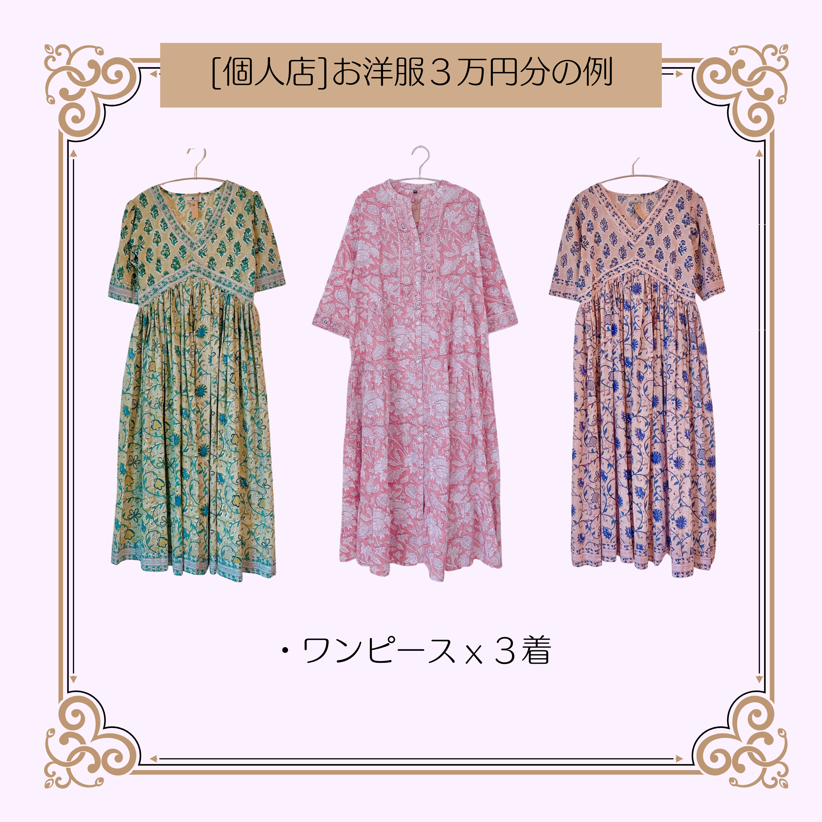 ※ワンピースなどはデザイン(使用する布地の量)により値段が変わるので、